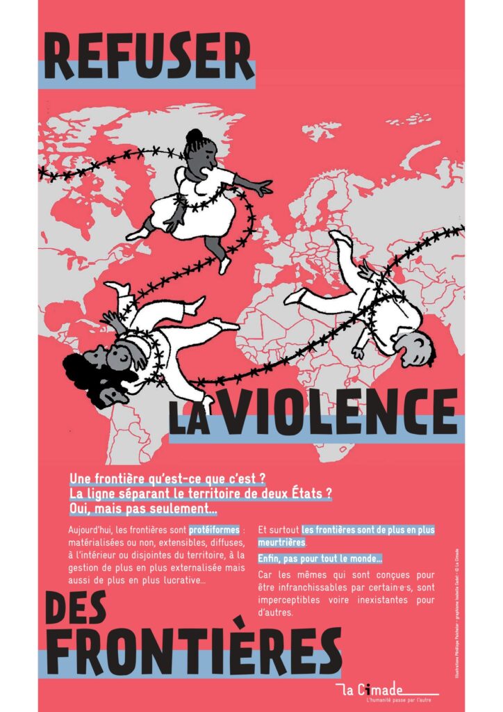 « Refuser la violence des frontières » est une création de La Cimade. Elle est le fruit d’une adaptation du Petit guide Refuser la violence des frontières qui est téléchargeable sur le site de La Cimade