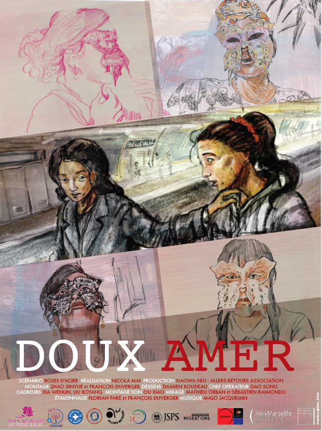 En seconde partie, projection de « Doux­ Amer », une ethnofiction réalisée dans le cadre d’un projet de recherche européen (Sexual Humanitarianism : Migration, Sex Work and Trafficking) coordonné par Nicola Mai. Il est le résultat d’ateliers d’écriture qui ont rassemblé 11 femmes chinoises migrantes ayant eu une expérience de travail sexuel à Paris. Le scénario né de ces ateliers n’a jamais pu être tourné du fait de l’épidémie de covid­19. Toutefois, en coopération avec l’association de femmes chinoises Roses d’Acier et avec la productrice Xiaowa Niu, « Doux Amer » propose un dispositif original pour mettre en scène ce scénario inachevé et le dialogue noué avec les chercheur-­e­s.